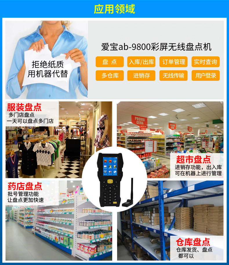 Aibao AB-9800 Collector Collector Inventory Беспроводной штрих-код Сканирование пистолета PDA Бесплатная доставка