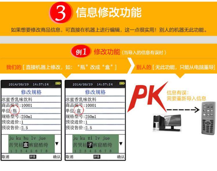 Один код многочисленной информации о продукте может быть импортирован, то есть один штрих -код соответствует нескольким элементам продукта, особенно в индустрии одежды.Коллекционер сканирование