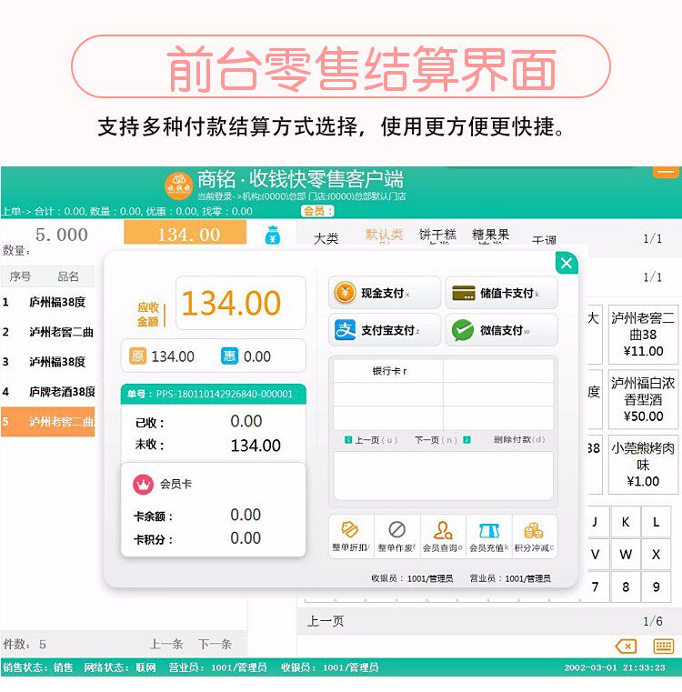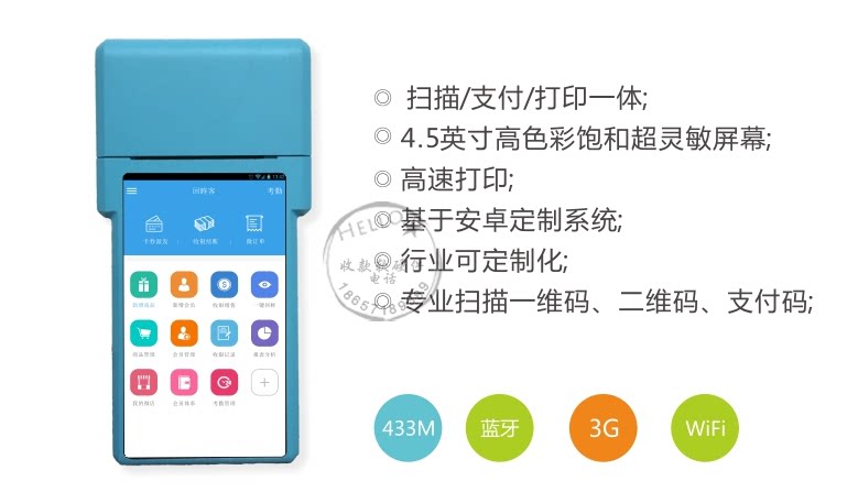 Беспроводное соединение Wi-Fi поддерживает сеть 3G, код сканирования для выпуска заказов в любое время и в любом месте, кассовый регистр и оформление заказа, а также печатные счета.