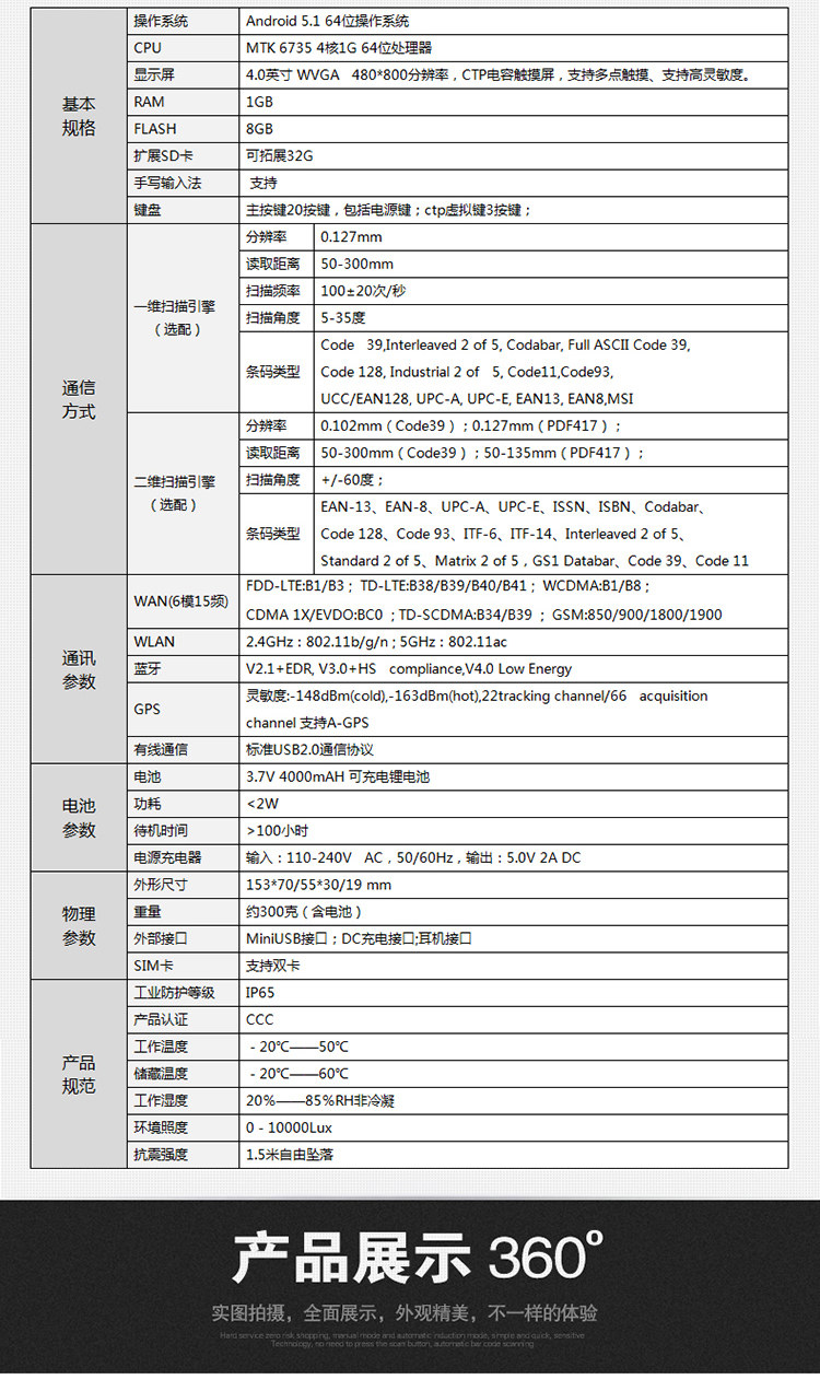 Конфигурация по умолчанию: Android 5.1+ One -Dimensional Laser+Wi -Fi+Bluetooth+Vhoal Netcom 4G+Photo+GPS