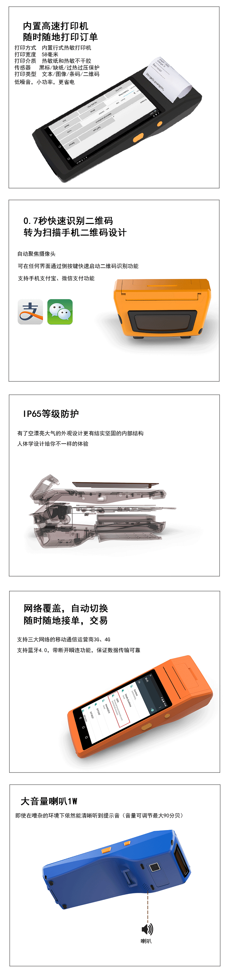 ПРИМЕЧАНИЕ. Стандарт (одномерное сканирование, печать, 4G, WiFi, GPS, NFC/RFID, Bluetooth)