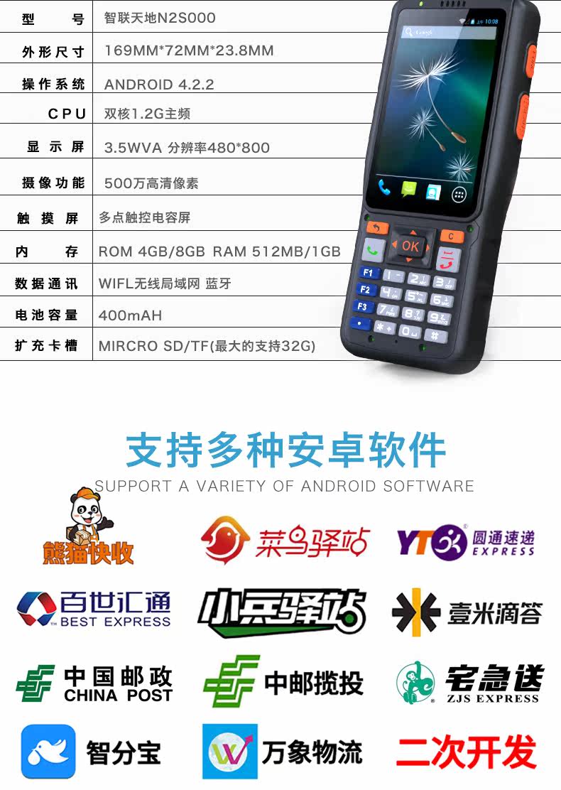 Zhilian Tiandi N2S000 One -Meter -Drop Courier Station Шатер -код Коллектор Collector PDA Рандочный терминал Android Warehouse вход и вход беспроводной инвентарь.