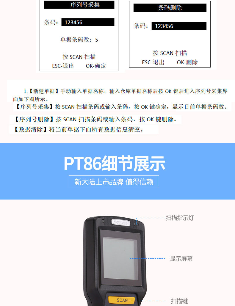 New World Pt86 Инвентаризация данных Сканирующего оружейного штрих -кода Один двухмерный портативные коды сканирования терминалов КПК, существующие системы входа в систему Дадонглангша и выхода из супермаркета Logistics Express