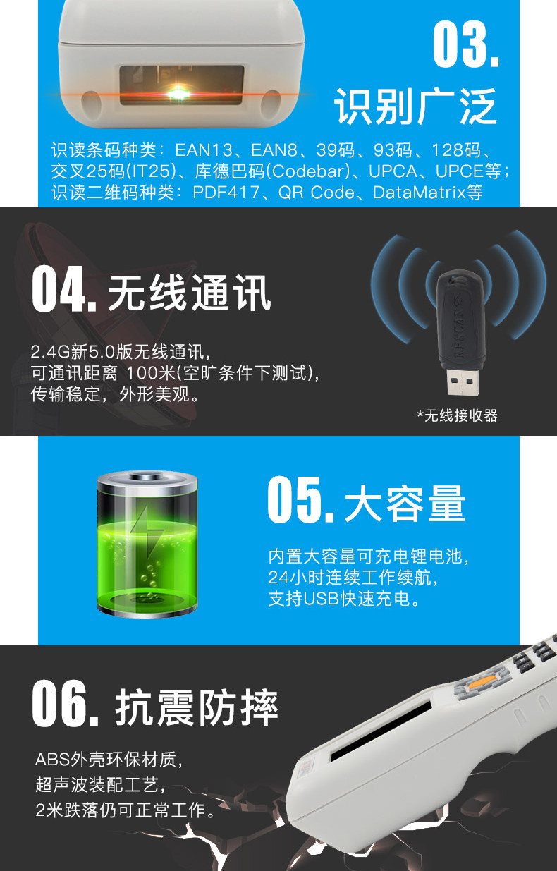Meiyi Cheng NP версия одного измерения беспроводного сканирующего сканирующего пистолета с красным светом, существующего универсального коллекционера Data Supermarket Soder Coder Кодирующий штрих -код BA Gun PDA