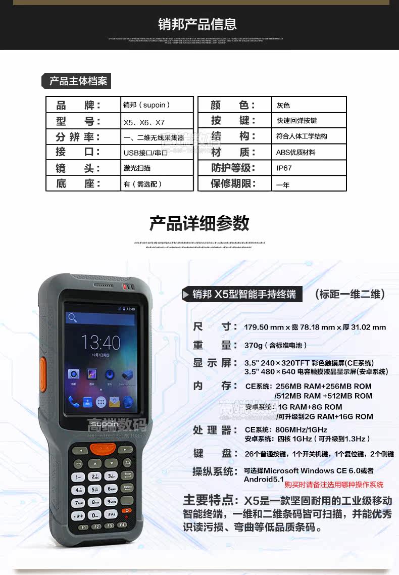 SUPOIN X5 X6 X7 X5H РАНПРОСКИЙ КОЛЛЕКТОР КОЛОЖЕНИЕ ДАННЫХ ДАННЫХ ДАННЫЙ DPM Сканирование орудийного пистолета Длинная версия системы Win CE Android RF Инвентаризация оружия