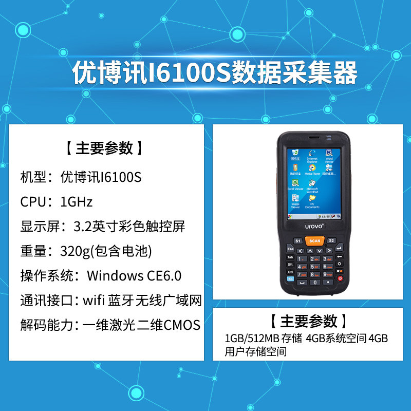 Youbo News i6100s Коллектор данных Цвет экрана Windows CE6.0 Руковолочный терминал Сканирование PDA Пакет Gun Express Logistics Warehouse