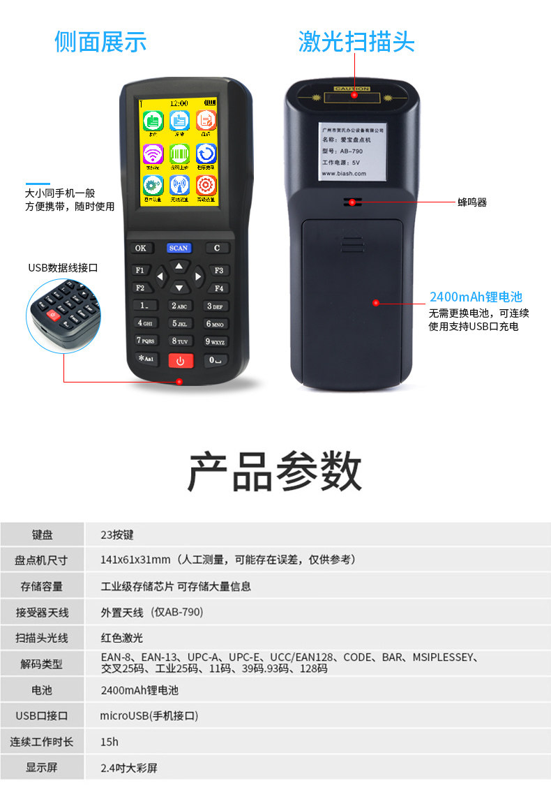 AIBAO 790 Инвентаризационная машина беспроводной сканирующее сканирование QR -код сканирование кода штрих -код сборы данных Устройство данных КПК портативной терминал супермаркет супермаркет супермаркета Courier Logistics Warehouse In -Stock Pakistan Gun Universal Artifact