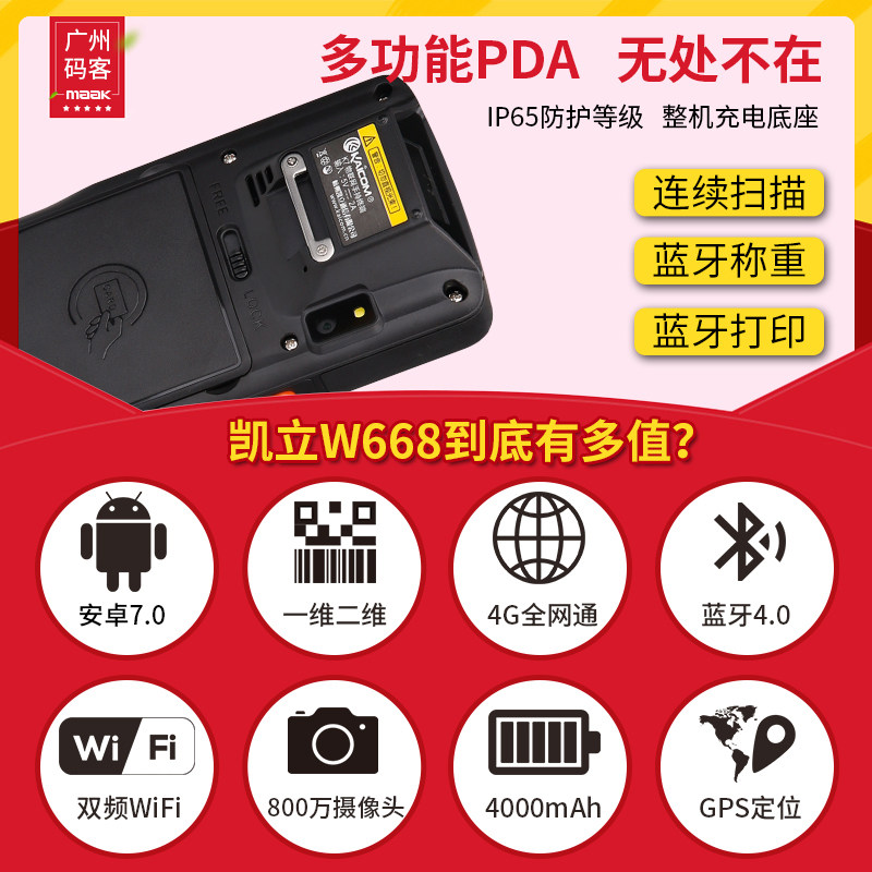 KAICOM Kaili W668/K7 Zhongtong Express, держащий о артиллерийке, держащий терминал Express Supermarket Supermarket Zto Courier Handheld Geek Performance Zhongtong Express Scanning Беспроводной смарт -терминал Baya Baya