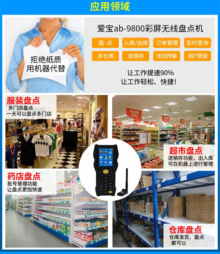 AIBAO AB-9800 Склад склада супермаркета Инвентаризации Машины Штрих-код Коллекционер данных и продажа склад с складом и выходит из инвентарного склада Сканер Сканер Сканер Сканер Сканер.
