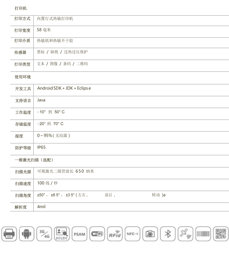 Конфигурация конфигурации продукта 4G/распознавание отпечатков пальцев/распознавание идентификационных карт/GPS/Bluetooth/NFC/IC Reader/Wi-Fi/58 мм нагреватель