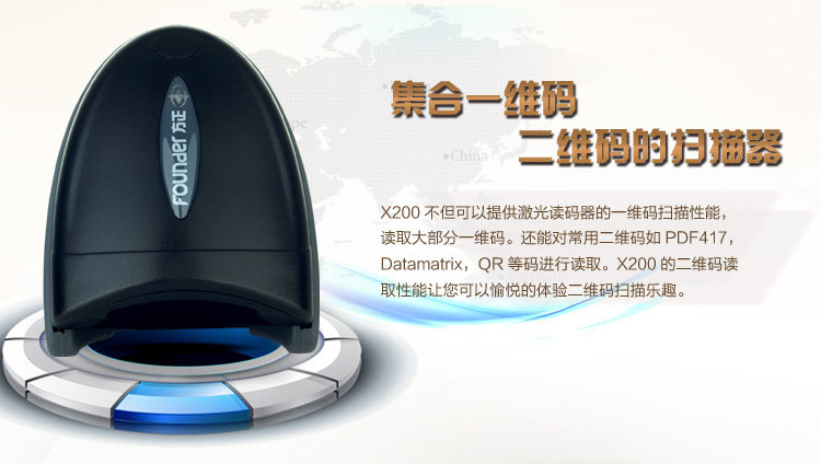 Основатель x200 сканирующий сканер пистолет портативный портативный флип -разделенный код One -Dimensional Code Scanning Scanner Scanner