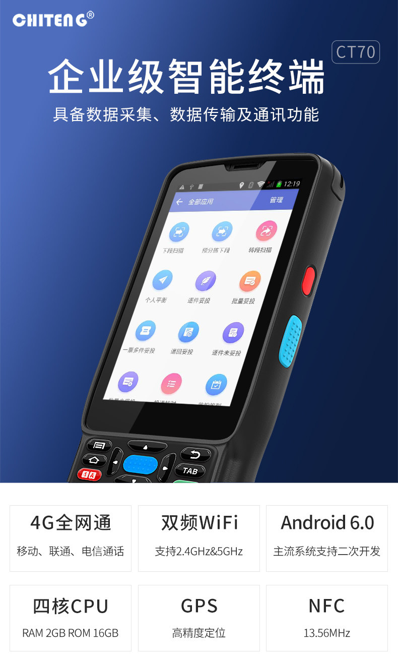 驰腾 CT70 Android Mobile Handheld Terminal Station PDA Housekeeper Po Tu Popo Wanli Niu Eli Wantou Tong Super Group Erp Bai Shi Yuncang NFC Машина для сбора данных