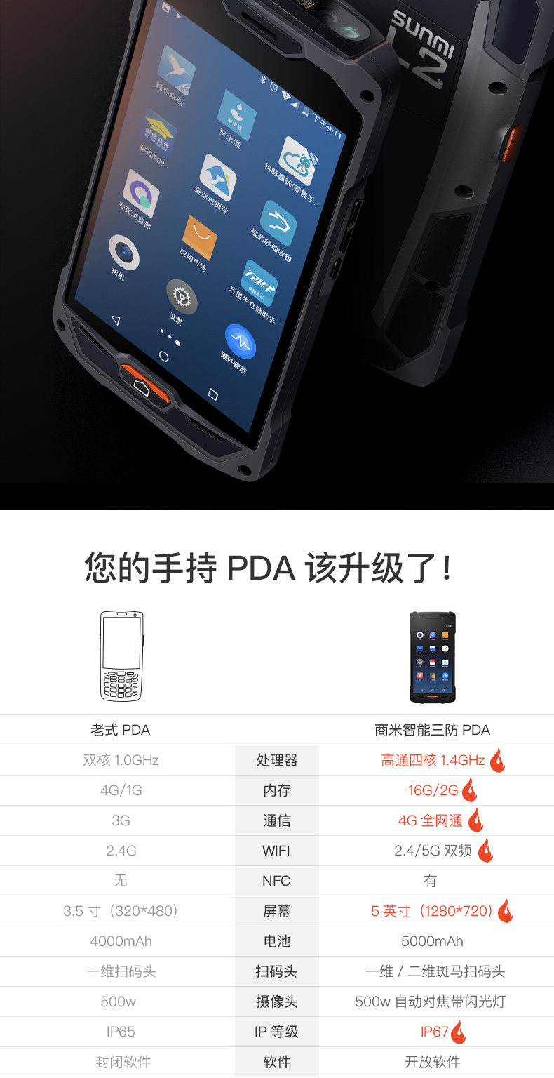 SUNMI/商米 L2 Smart Three Defense Machine Supermarket Warehouse In -Entry Store Inventor Vie -Code Code Code Collector Scanner Беспроводной портатив Android PDA