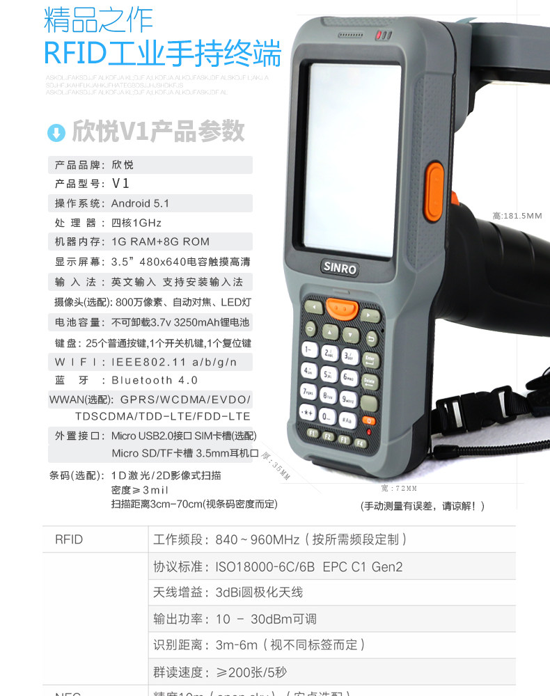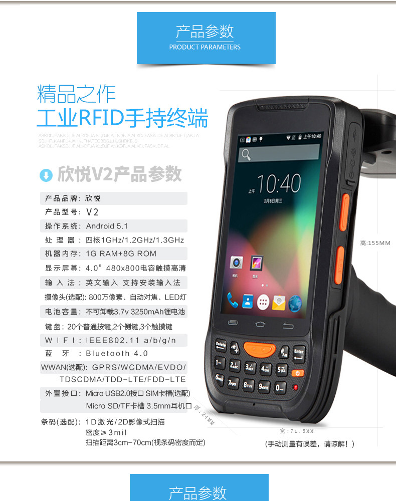 - V2 два -мерный+Android 5.1+6C RFID Модуль