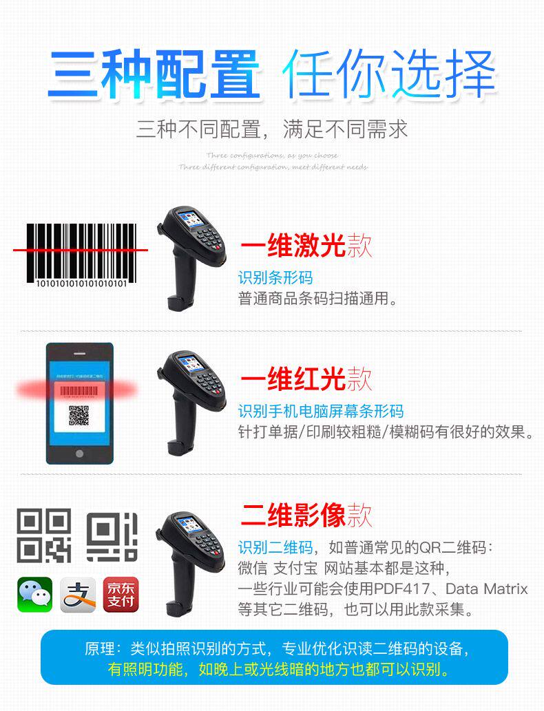| Цвет: | Стандарт: беспроводной одноразмерный код продукта лазерного сканирования, Необязательно 1: беспроводной один -мерный код продукта красного света и код экрана, Вариант 2: Беспроводное двухверовое сканирование изображений Один -размерный QR -код |