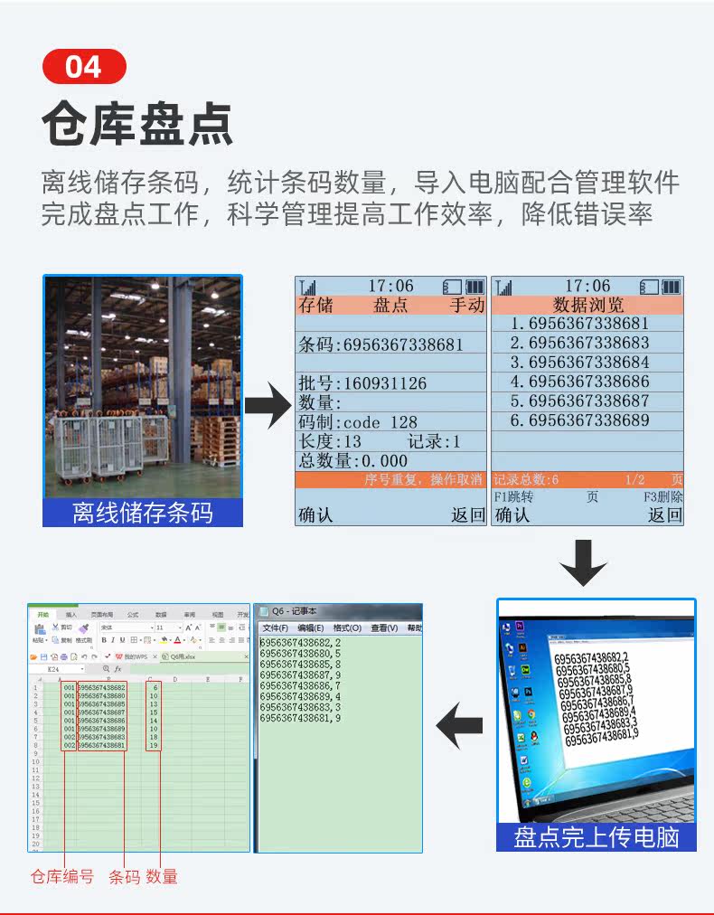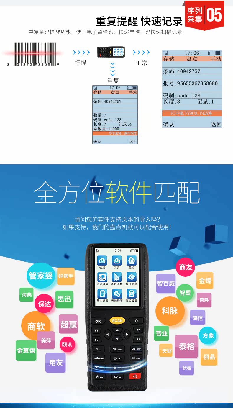 维融 Изобретатель беспроводной сканирующий пистолетный ружье супермаркет склада и входные данные Коллекционер Коллектор ERP Продажи артефакта Cainiao Station Logistics Bay Gun Hun Handheld.