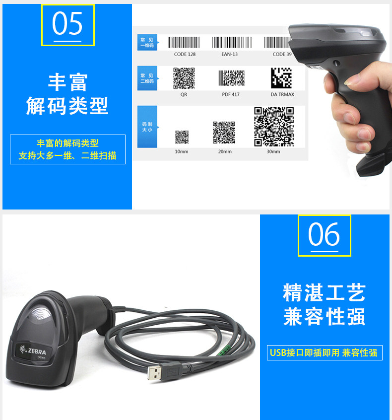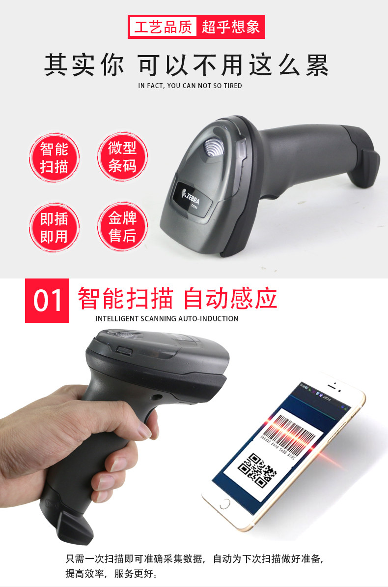 Zebra Zebra DS4608-SR XD Двумерное проводное сканирующее пистолет подходит для Code Code Code DPM.