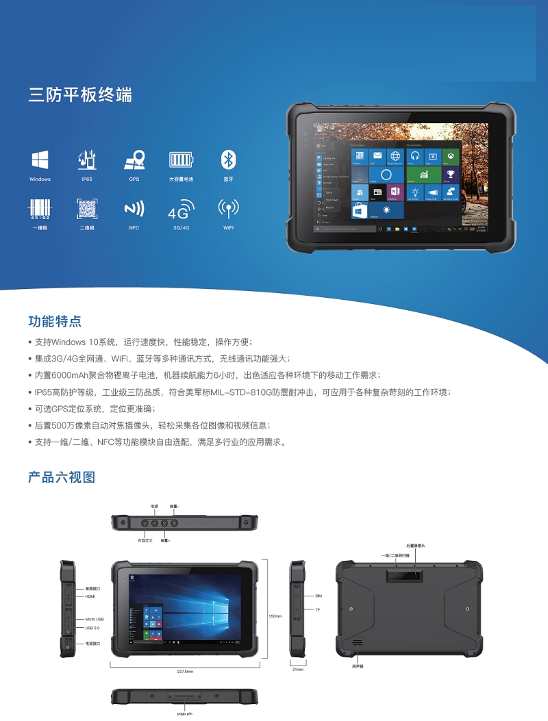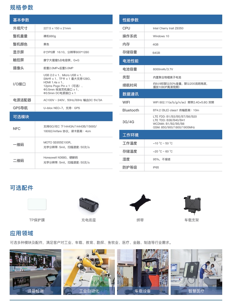Yidao I81H/H 8 -INCH Windows 10 Промышленное трехпрофильное планшетное компьютер Octavo Win10 Индустриальное управление таблет