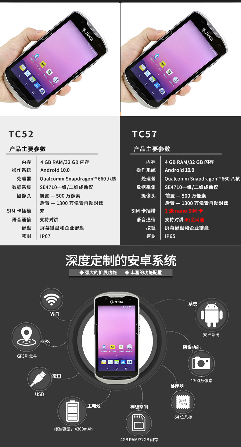 Zebra Zebra TC52 TC57 Collector Android PDA Руночный инвентарь терминала