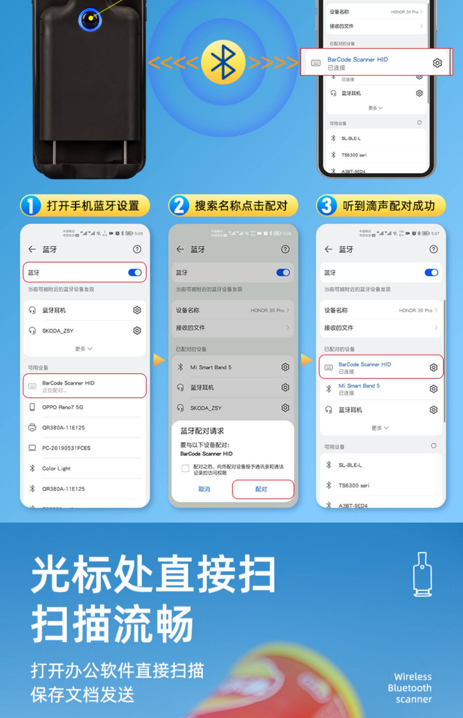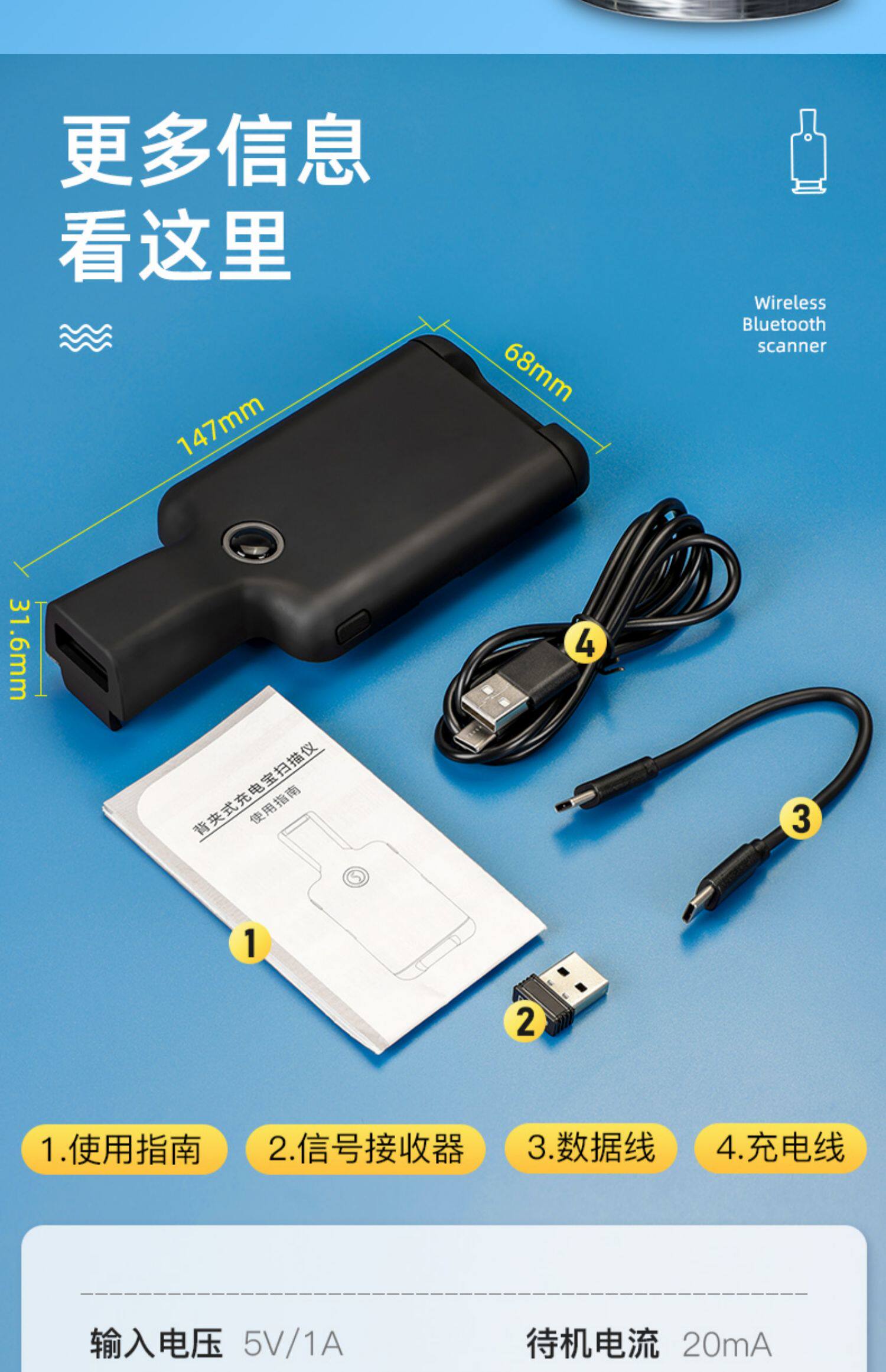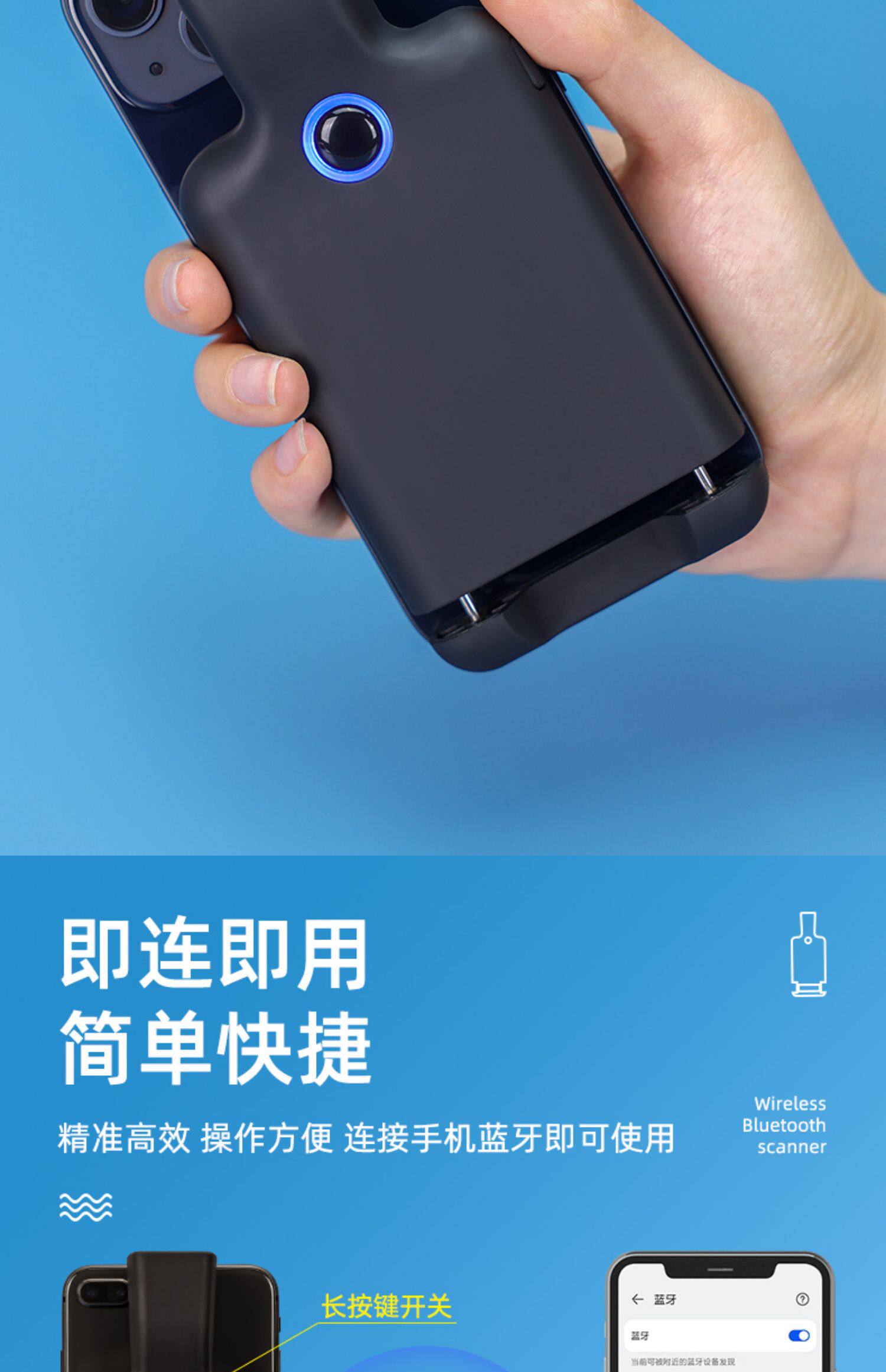 Inventor Mobile Phone Back Clip Portable Wireless Bluetooth Data Collector Двухмерное ручное сканирование для сканирования пистолета, хранение, чулок, сканирование книжного склада и выхода из супермаркета логистика Courier Jam