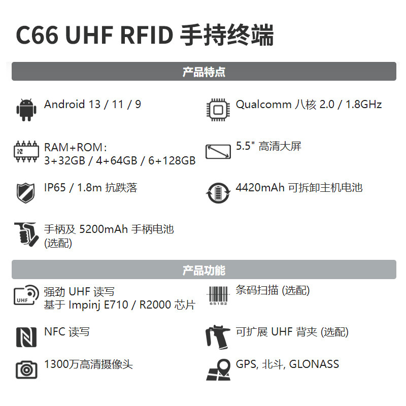 CHAINWAY Станьте C66 Ultra -High -Cretency RFID Data Collector PDA Handheld Terminal Android 9.0 Smart Terminal Industrial -Crade Smart UHF Инвентарный компьютерный сканер.
