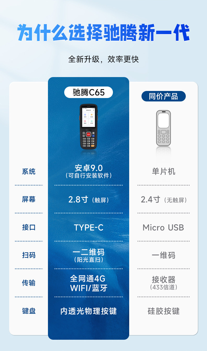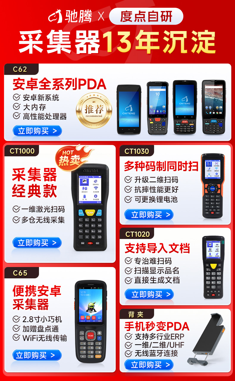 驰腾 КАН -РАНПОЛЯНСКИЙ ТЕРМИНАЛ C65 Android беспроводная коллекция данных Сканирование и инвентаризационное склад и инвентарь