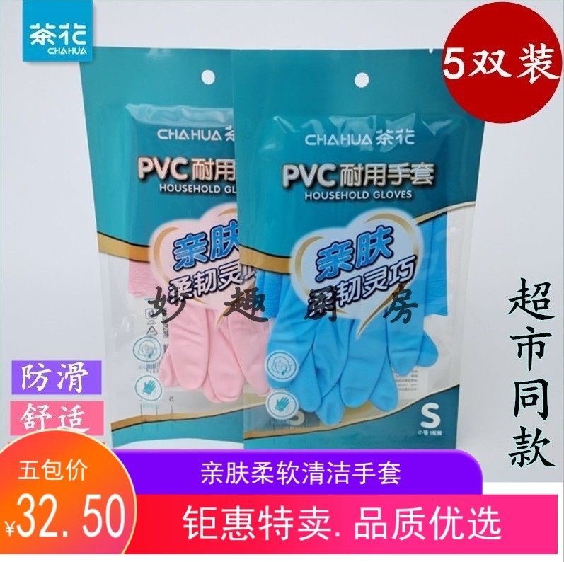 Camellia S пять пакетов промывших резиновых перчаток водонепроницаемое чистое домашнее промывание женских тонких перчаток C78011
