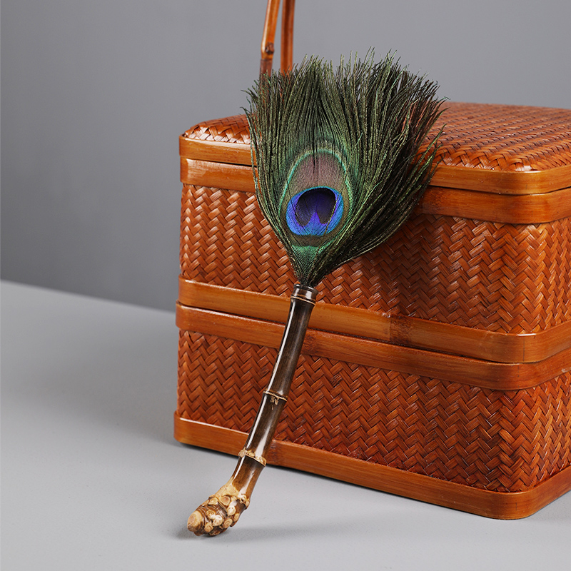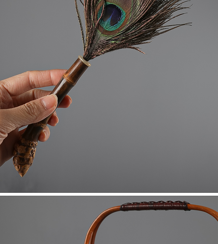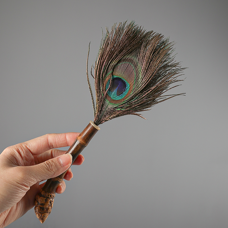 Фиолетовый бамбук корень пыли натуральная ручная павлинная пыль с удалением пыли с коротким стилем очистка чайная комната уборка длина