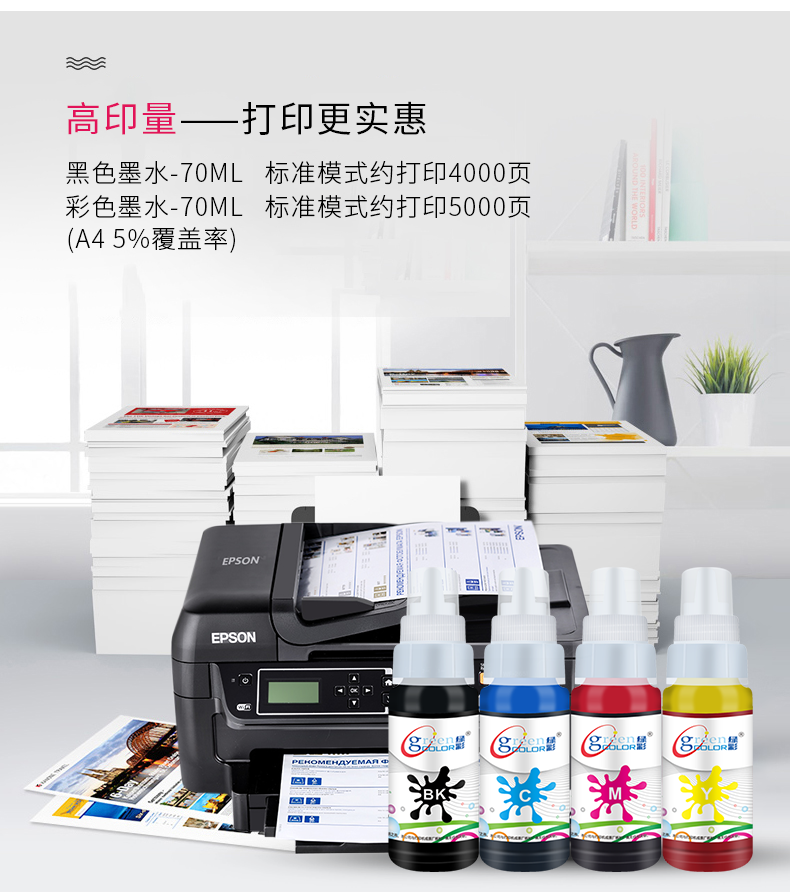 Зеленый цвет подходит для Epson WF-2750 2651 3720 3721 7610 7710 7720 7715 7725 XP-442 220 235 ME-10 Fill Fill
