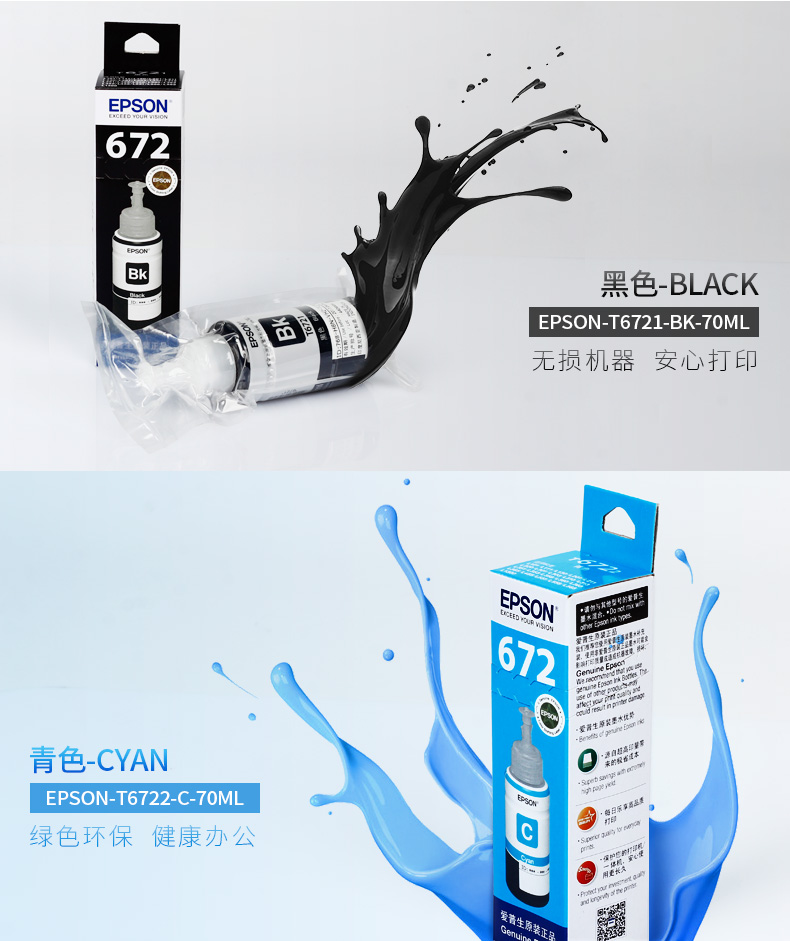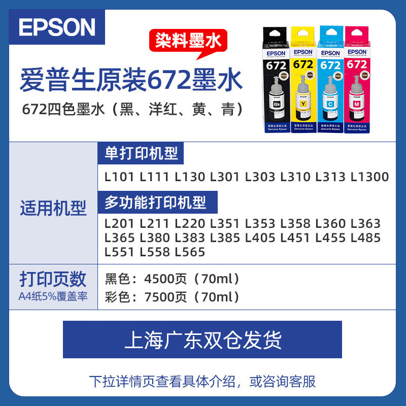 Epson Epson Original 672 Ink L1301313 L310 L360 L363 L380 L383 L1300 L1300 L551 L405 T6721 - принтер