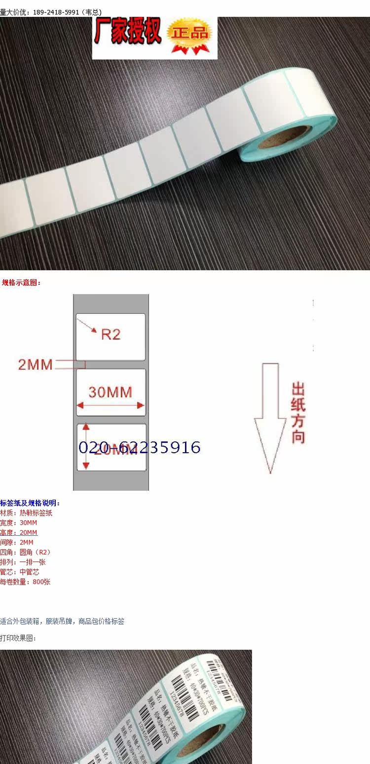 Горячая продажа Три обороны тепло -чувствительность 30х20 стрип -печатная бумага GP3120 3150T 1324D GK888T GT820 XP350 360 450 460B TAG Baper 800 Лист 800 Лист 800