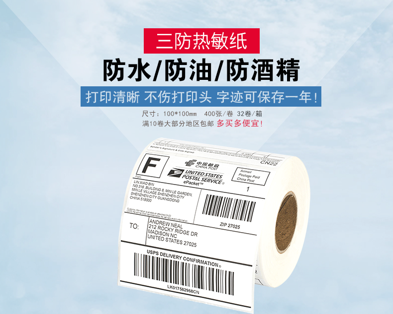 DataMax Трехталетная тепло -чувствительность бумажной метки штрих -коды медная не -глупого клейкой наклейки подходит для оборотной коробки -упаковки