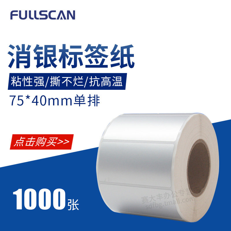 FullScan Потребительский серебряный дракон 75*40*1000 кусочков водонепроницаемой не гнилой, не -нрико -гелевая метка штрих -кода с фиксированным средством.