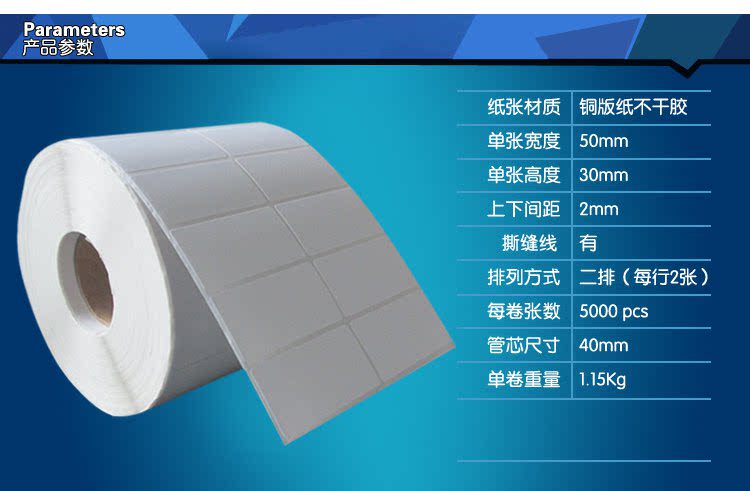 Медная версия бумажной не -сумопроизводительной метки 50*30 20 10 40 50 60 70 Бланк штрих -кода Печковая наклейка бумаги