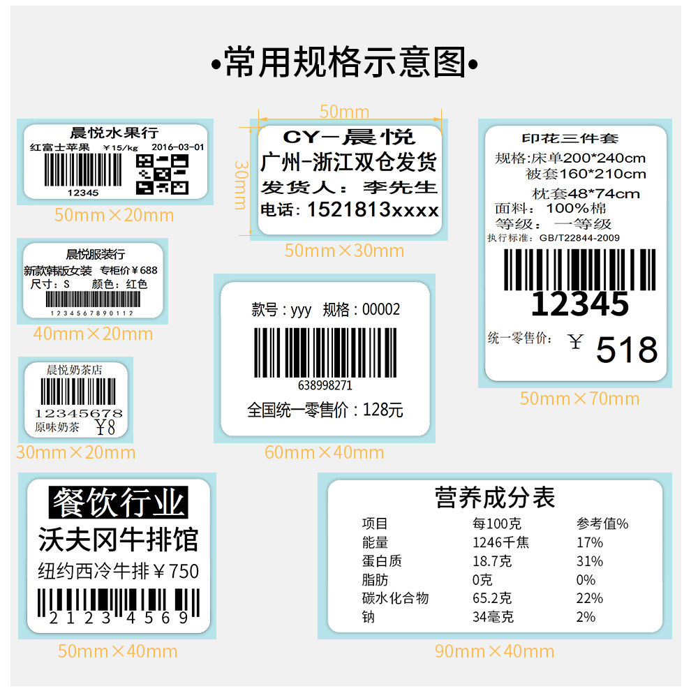 Три антитермальных метки чувствительности 60x40 20 30 50 70 80 100x100 штрих -код