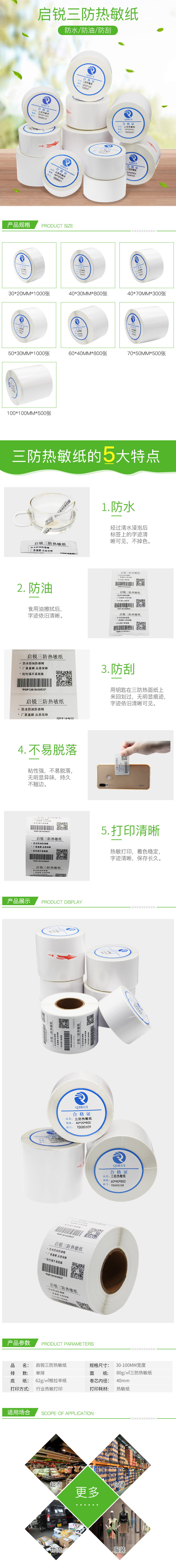 QIRUI Три оборонительная тепловая метка 40 20 30 50 50 70 100 Незащитные клейкие штрих -кодовые машины