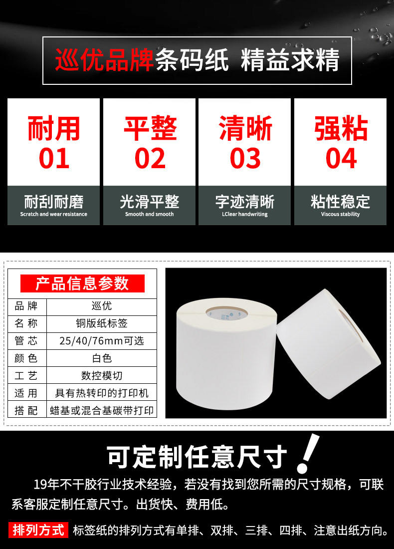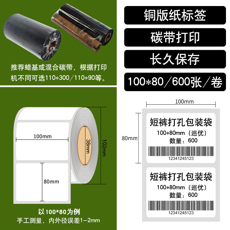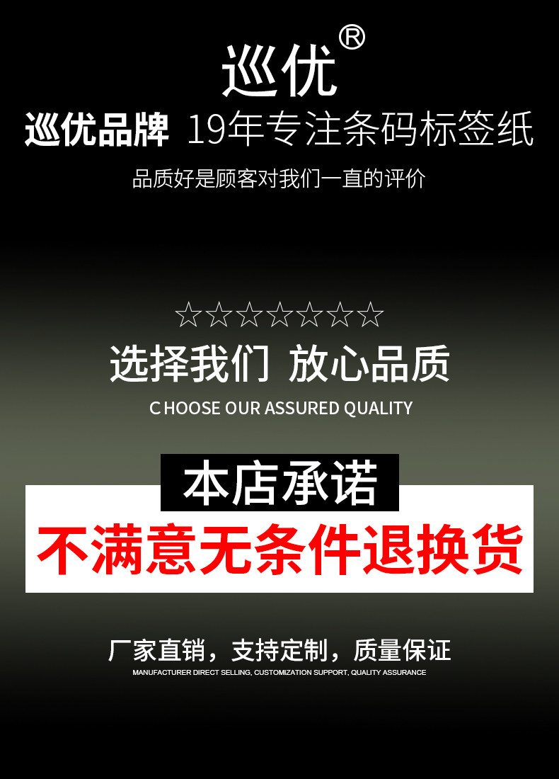 巡优 Медовая версия метки печатной бумаги 100x40 102*75 20 30 35 45 55 65 152 165 Hot Transfer углеродная полоса -кодированная штрих -код.