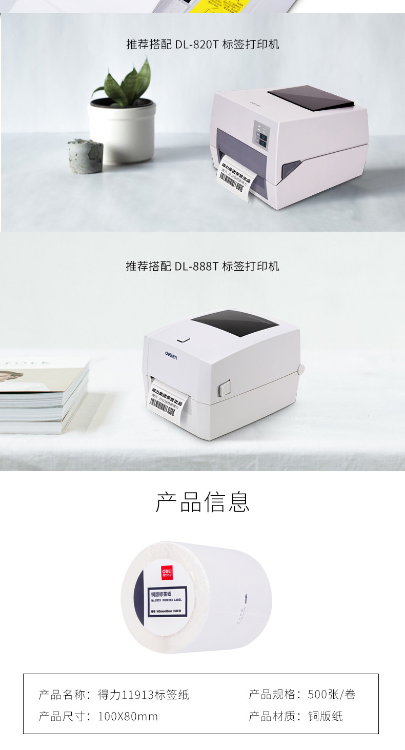 Deli 11913 серия серии медной версии не -Dry Glue Label Штрих -кодовая печать