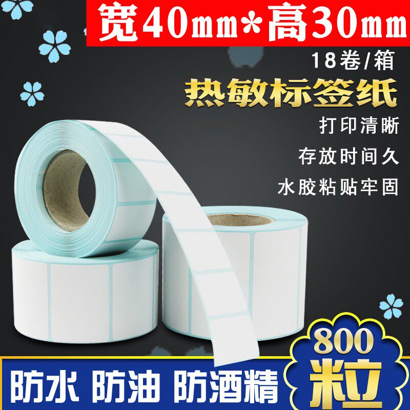 Теги 40*30 Том 800 водонепроницаемая термическая чувствительность печатная бумага без сухого клея штрих -кода