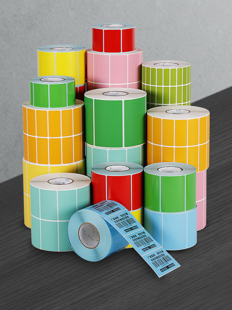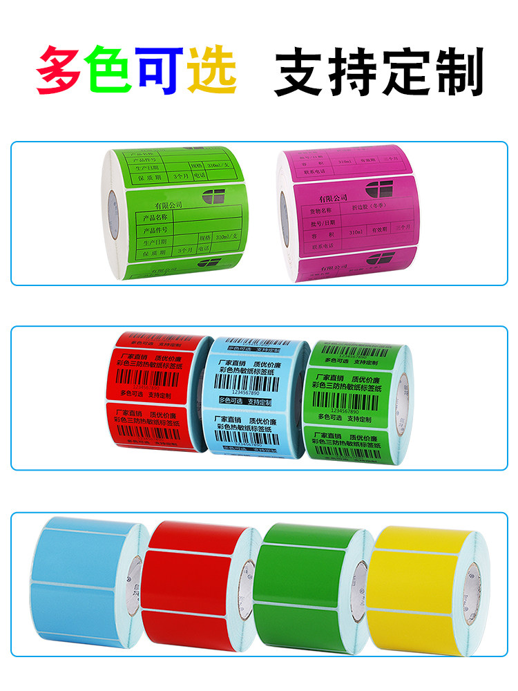 Цвет Трехмостойенный тепловой чувствительность Неоттрадающая резинка Печата Печать бумаги Водонепроницаемые стриптисты 60*40 красные 30 желтых 50 синих 70 зеленых 80 Цвета 100x100 × 150 курьер Супермаркет Молоко