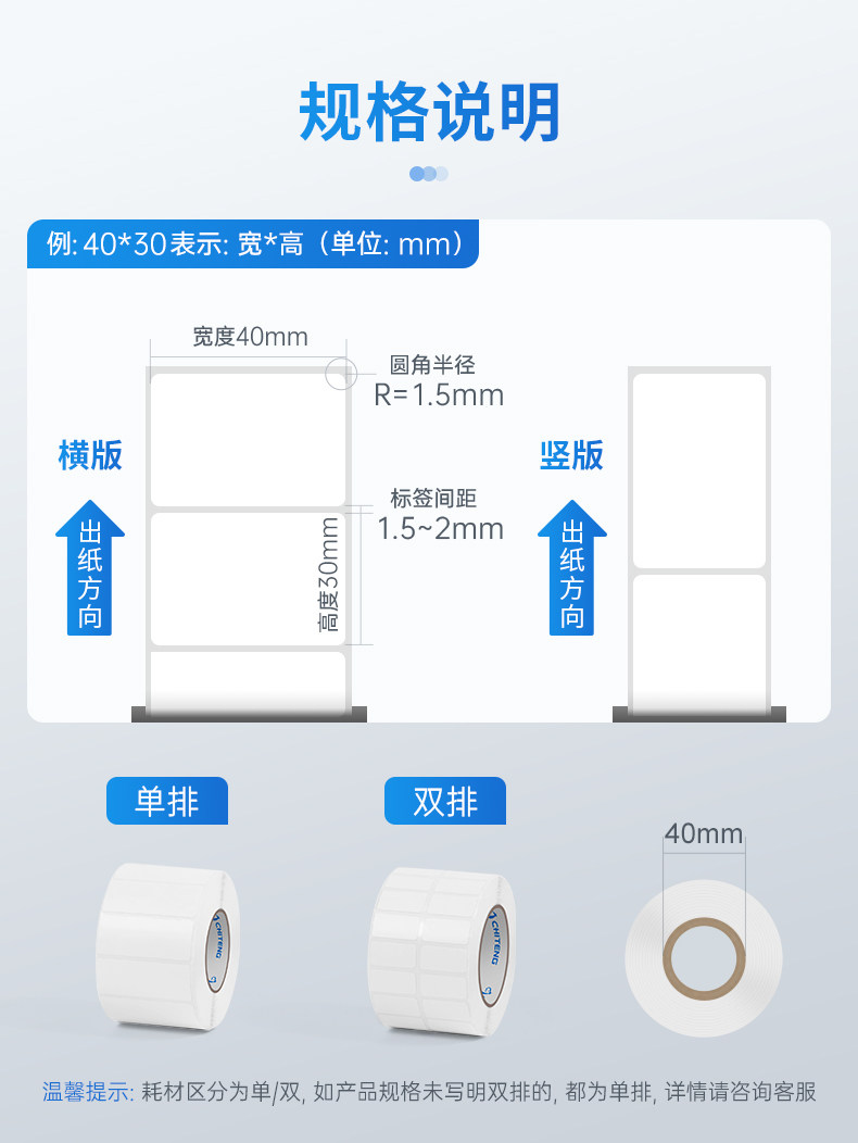 Chi Teng Высококачественная термистическая бумага без сухих клейкой метки 70-100 мм гладкая версия штрих-кодовая бумага Amazon FBA Прайка для грузовой наклейки, коммерческая единая двойная полоса двойная строка.