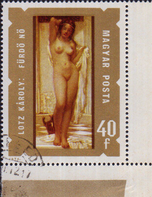 Венгерские марки 1974 Живопись Работы для купания Всемирно известная картина Полная продукция Полная ремень для продукта Угловая бумага бумага
