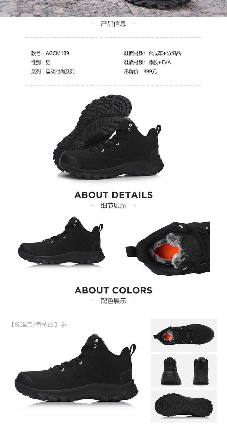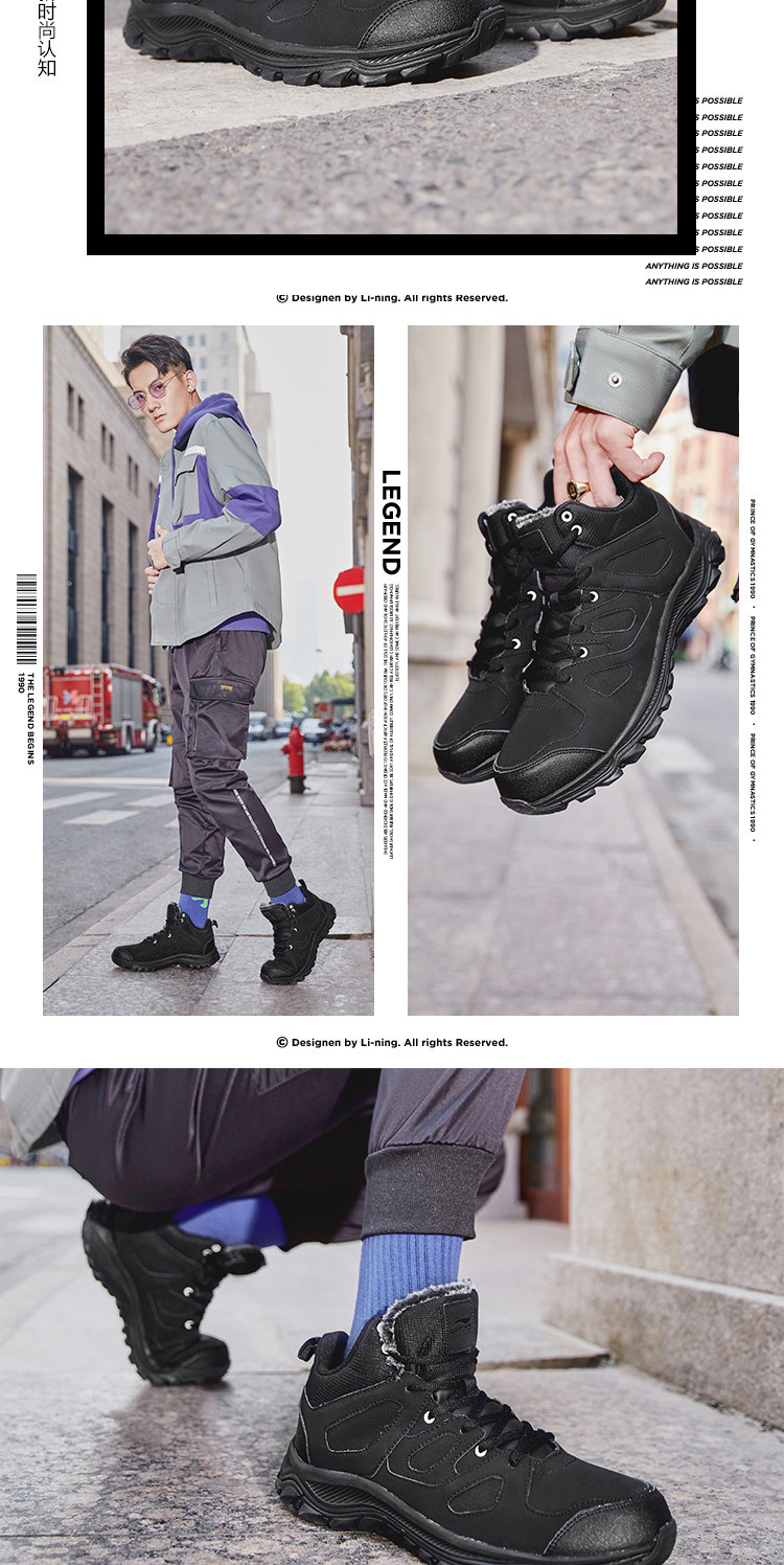 Li Ning, демисезонная утепленная флисовая альпинистская обувь подходит для пеших прогулок