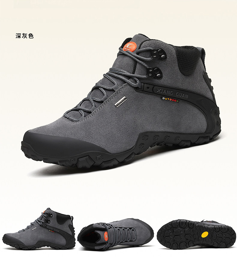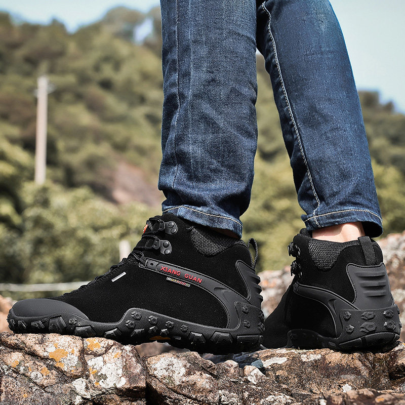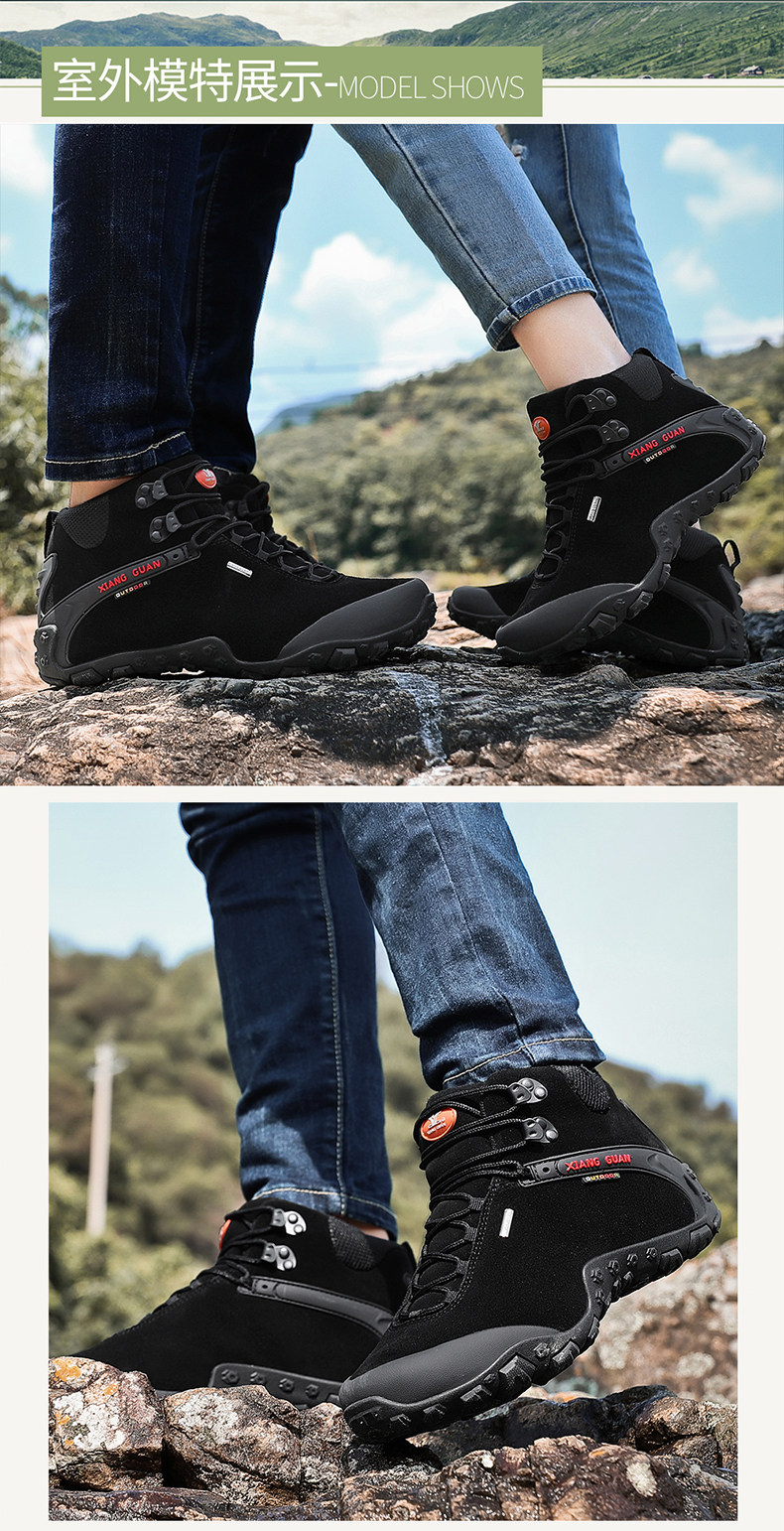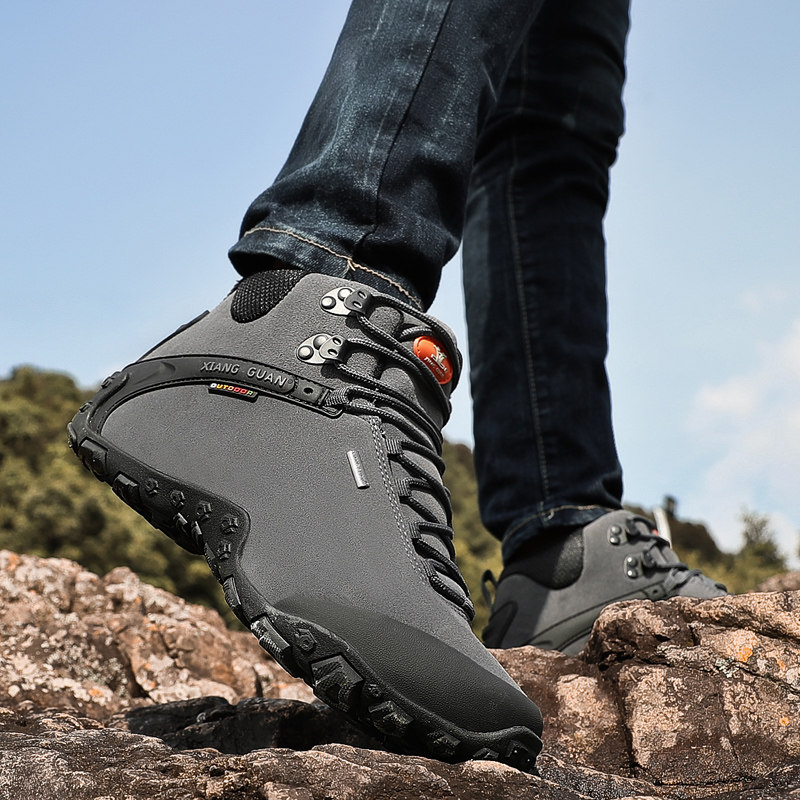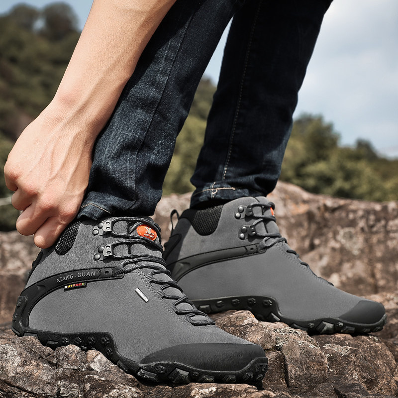 Высокая альпинистская нескользящая износостойкая демисезонная кожаная обувь подходит для пеших прогулок, большой размер