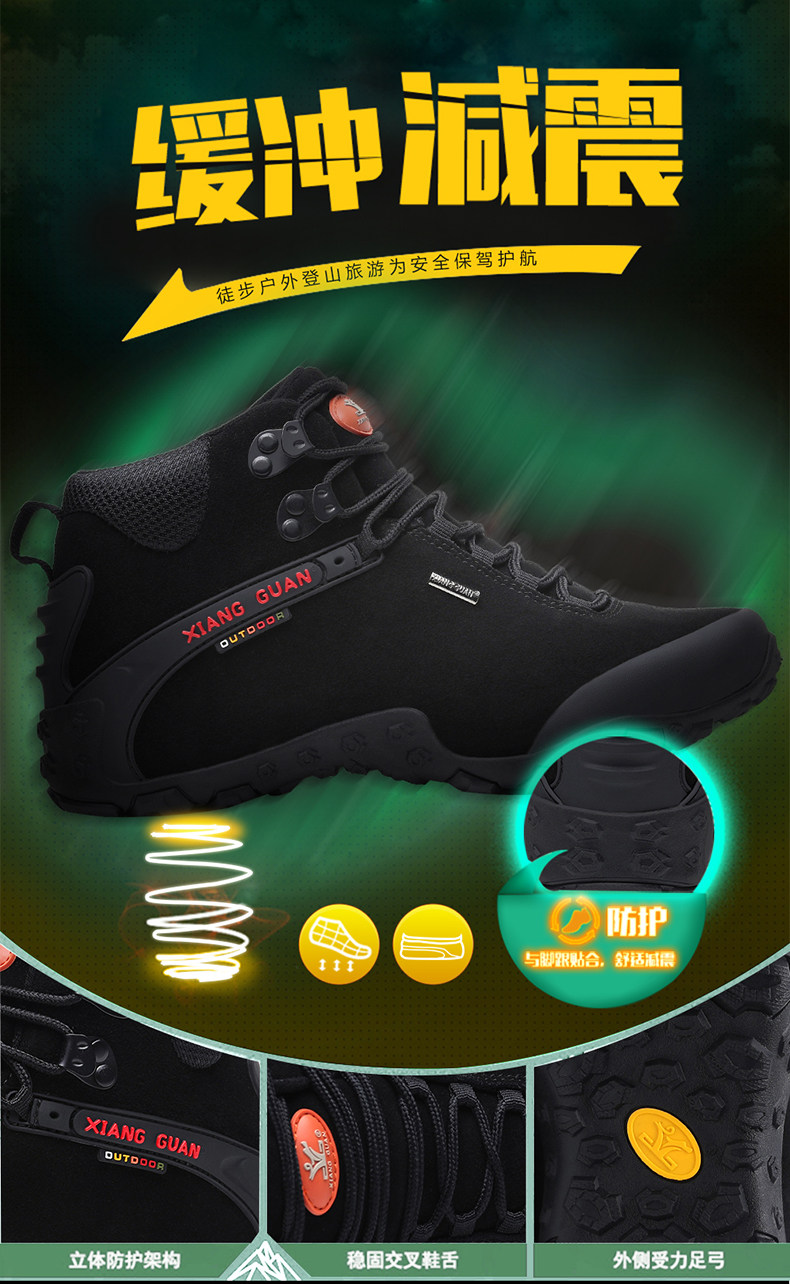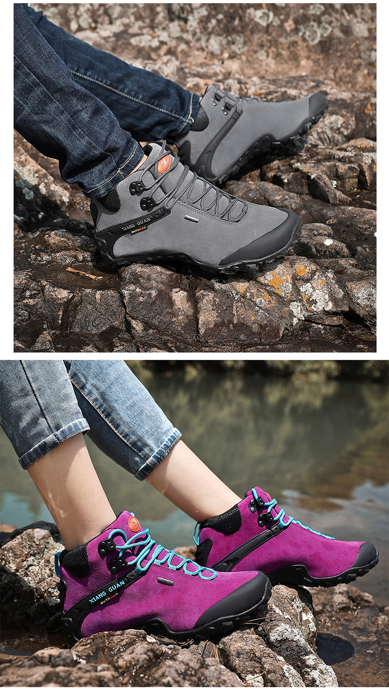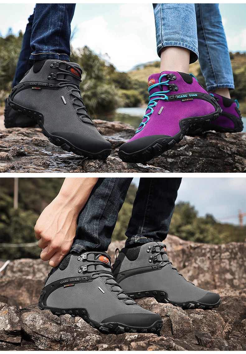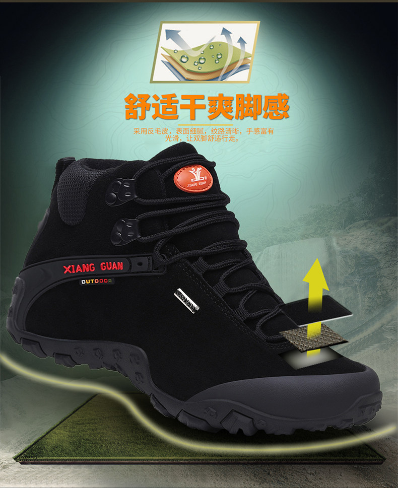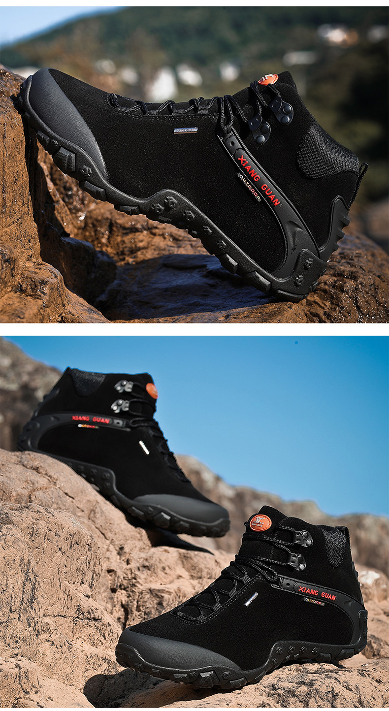 Высокая альпинистская нескользящая износостойкая демисезонная кожаная обувь подходит для пеших прогулок, большой размер