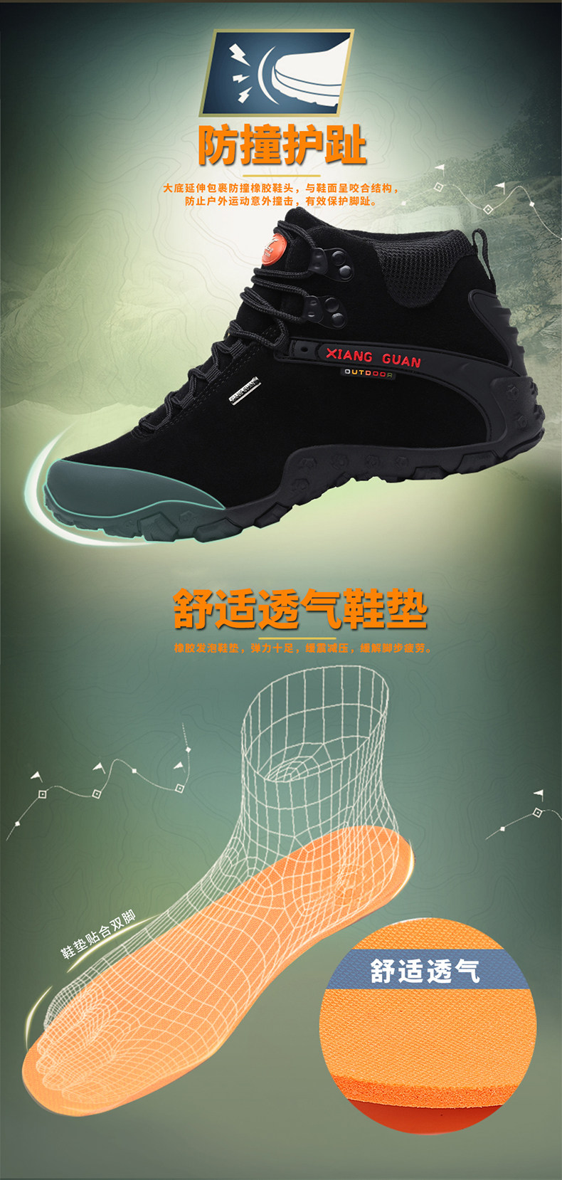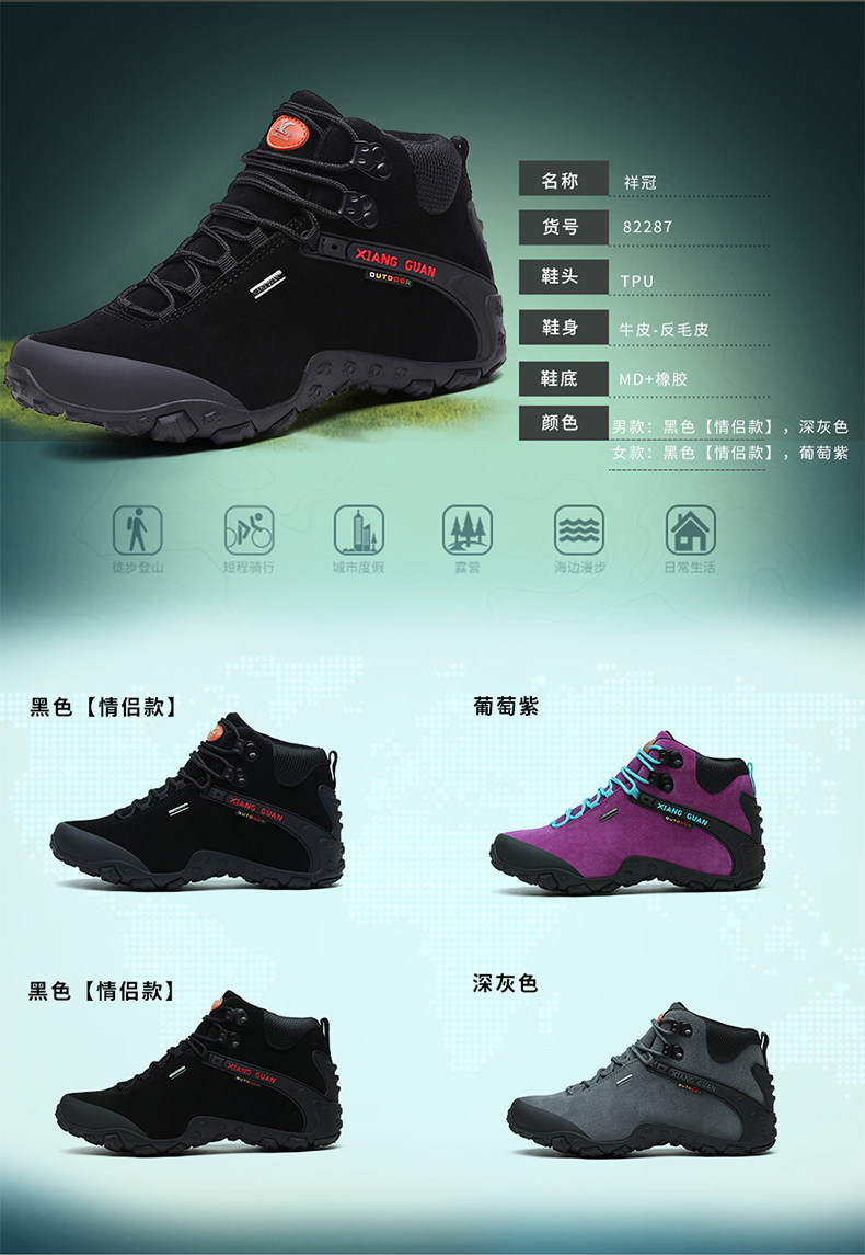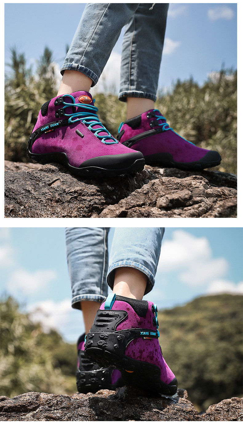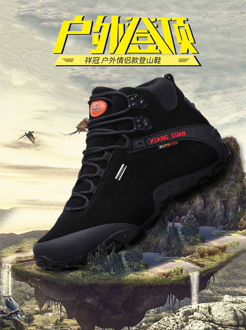 Высокая альпинистская нескользящая износостойкая демисезонная кожаная обувь подходит для пеших прогулок, большой размер
