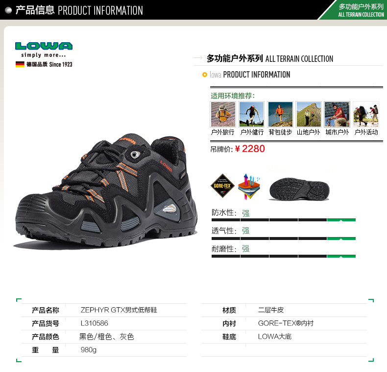 Lowa Outdoor Zephyr GTX Мужской низко -глиночный, устойчивый к износу, анти -слабый, нельестный и дышащий альпинизм, пешеходные туфли L310586