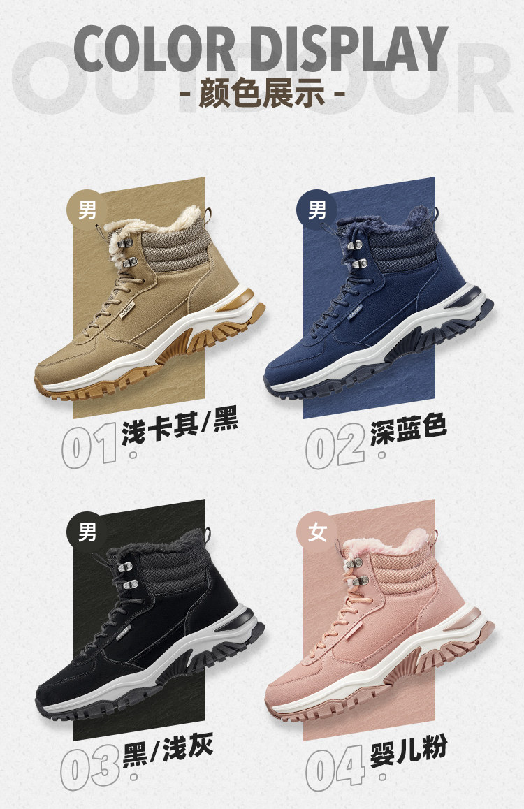 Зимняя высокая флисовая удерживающая тепло нескользящая износостойкая спортивная альпинистская обувь подходит для пеших прогулок