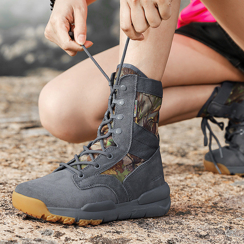 Альпинистская летняя дышащая обувь, нескользящие камуфляжные высокие внедорожные сапоги для путешествий подходит для пеших прогулок