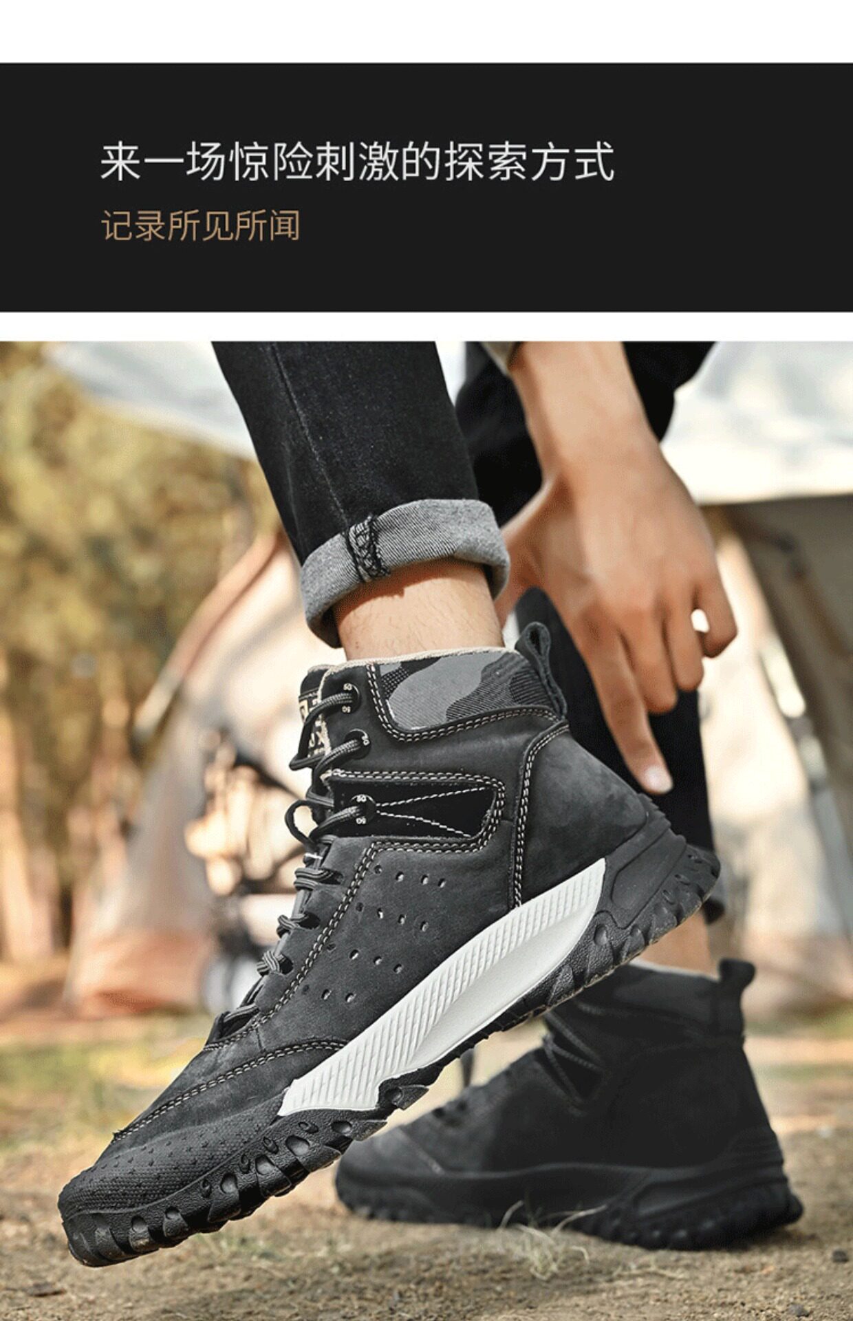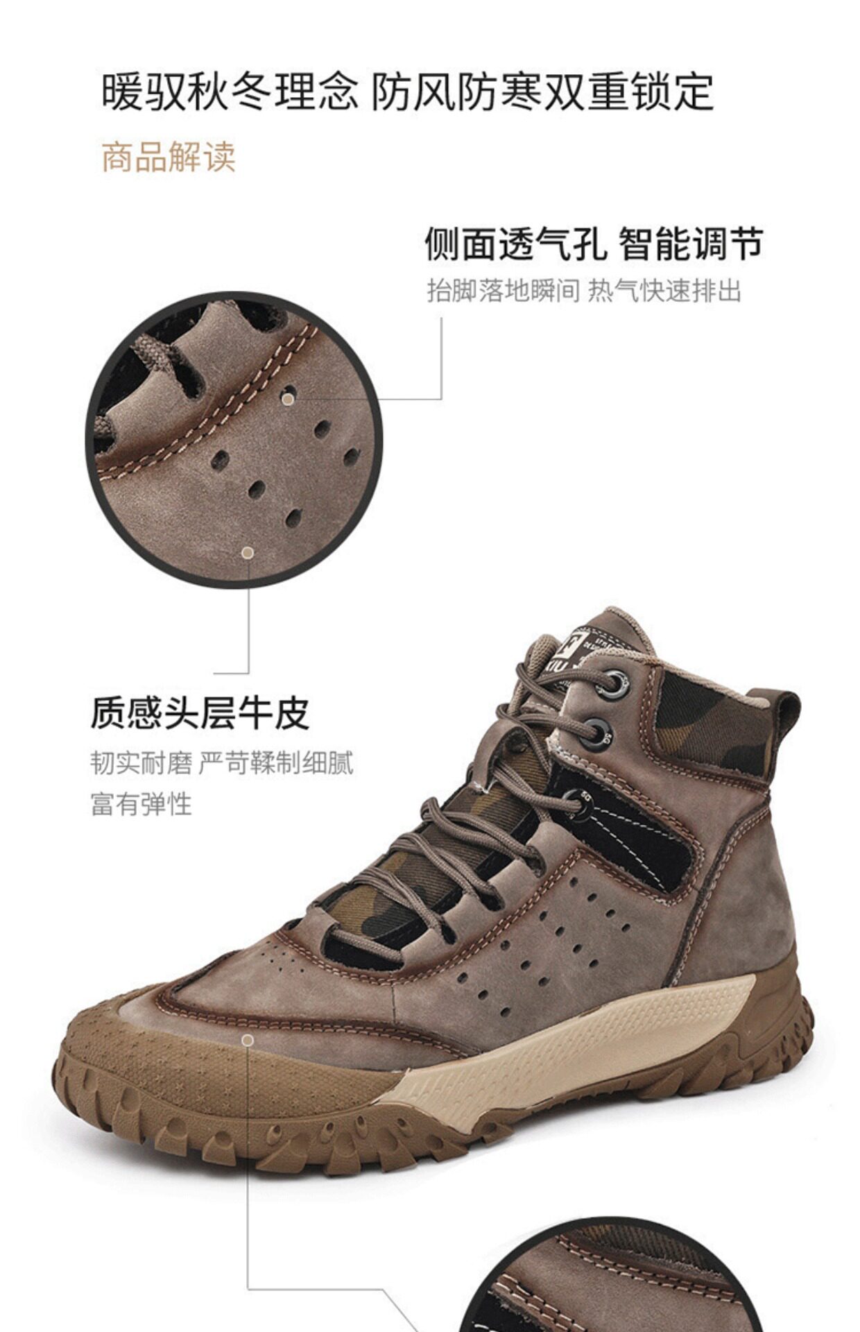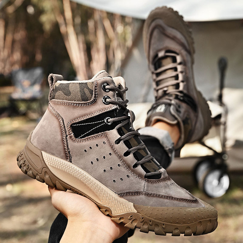 Высокая альпинистская нескользящая износостойкая дышащая обувь подходит для пеших прогулок, мягкая подошва, из натуральной кожи